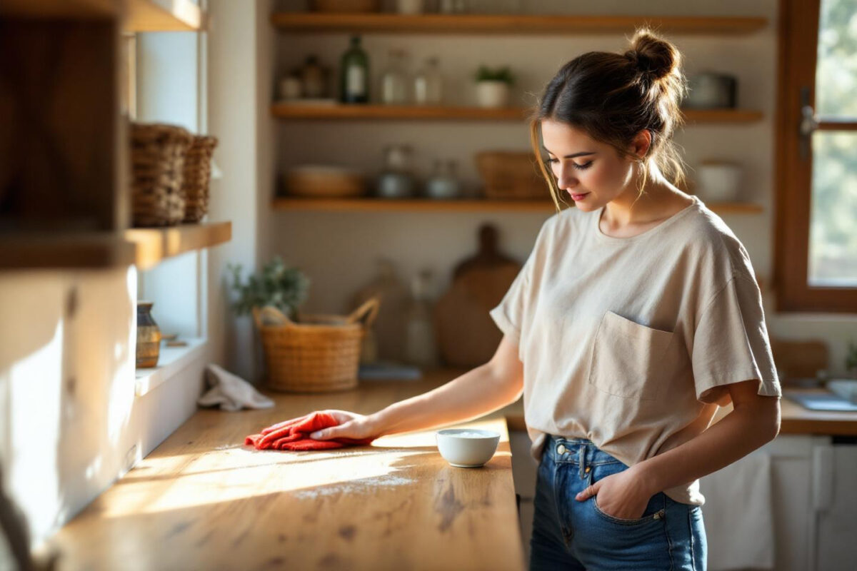 Pour pousser l’efficacité du citron et du bicarbonate encore plus loin, quelques gestes complémentaires s’imposent. D’abord, choisissez un citron bien mûr pour maximiser sa teneur en acide citrique, particulièrement utile contre les dépôts calcaires. En cas de plan de travail poreux (bois brut ou béton ciré), veillez à ne pas saturer la surface d’eau : préférez un nettoyage localisé, suivi d’un séchage immédiat avec un torchon. Évitez aussi les éponges abrasives, qui risquent de rayer les surfaces lisses comme l’inox ou le stratifié. Pour prolonger la brillance, pensez à huiler légèrement les plans de travail en bois avec quelques gouttes d’huile de lin pure une fois le nettoyage terminé. Le petit plus écoresponsable : récupérez le zeste du citron pour parfumer la cuisine ou booster le mélange lors d’un prochain entretien.