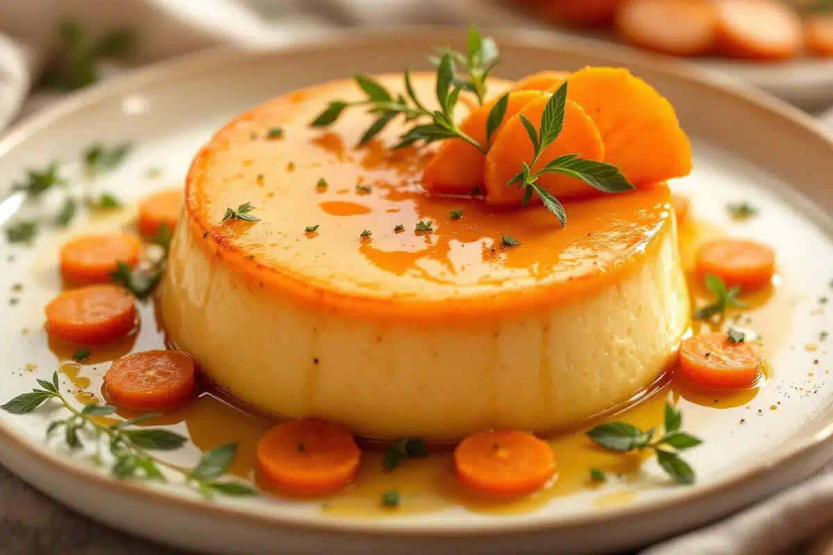 Saisir la carotte à la poêle permet de faire ressortir ses arômes sucrés et sa couleur éclatante. Ce procédé, sans nécessité d’œuf ni crème, garantit un flan tout en onctuosité et en équilibre.