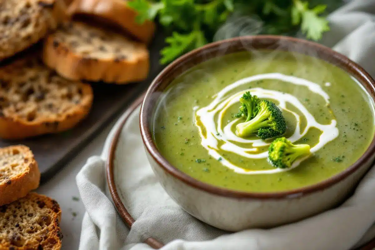 Aux premières lueurs de novembre, quand la brume caresse les toits et que la lumière baisse dès la fin d’après-midi, l’appel d’une soupe chaude et crémeuse se fait ressentir dans tous les foyers. Quoi de plus réconfortant qu’un grand bol fumant, où le vert du brocoli s’unit à la douceur d’une crème végétale et à la saveur légèrement « fromagère » d’un cheddar vegan ? On s’imagine blotti sous un plaid, cuillère en main, avec l’impatience de savourer cette alliance de douceur et de caractère, idéale pour illuminer un dîner hivernal, réchauffer un petit déjeuner dominical ou impressionner chaleureusement quelques convives de dernière minute. Cette soupe, aussi facile qu’ultra-gourmande, promet une onctuosité irrésistible et plonge la saison froide dans une ronde de saveurs réjouissantes.