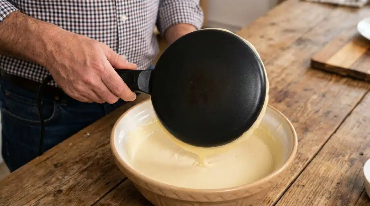 L’aspect hygiénique est un avantage majeur souvent sous-estimé. Avec une poêle classique et une louche, les gouttes de pâte sur le plan de travail, sur la gazinière ou sur les poignées de placards sont monnaie courante. Ici, le transfert se fait par contact direct entre l’appareil et le récipient dédié. Plus de louche qui goutte, plus de projections lors du versage : votre cuisine reste immaculée. Le nettoyage de l’appareil se fait rapidement grâce au revêtement antiadhésif de qualité.