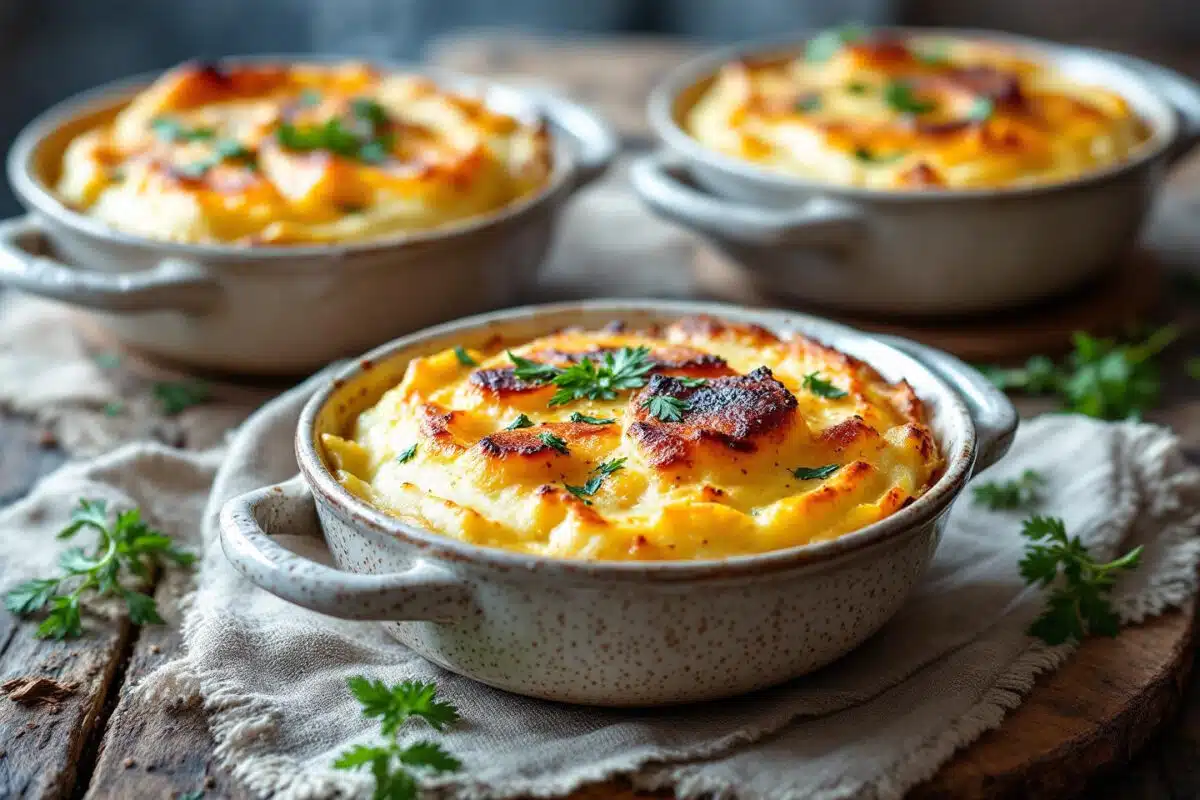 En variante, ajouter quelques noix concassées pour booster le croquant, ou une pincée de curcuma pour colorer l’ensemble. Ce gratin se transforme alors en pièce maîtresse d’un brunch d’automne, servi tiède, entouré de légumes rôtis.