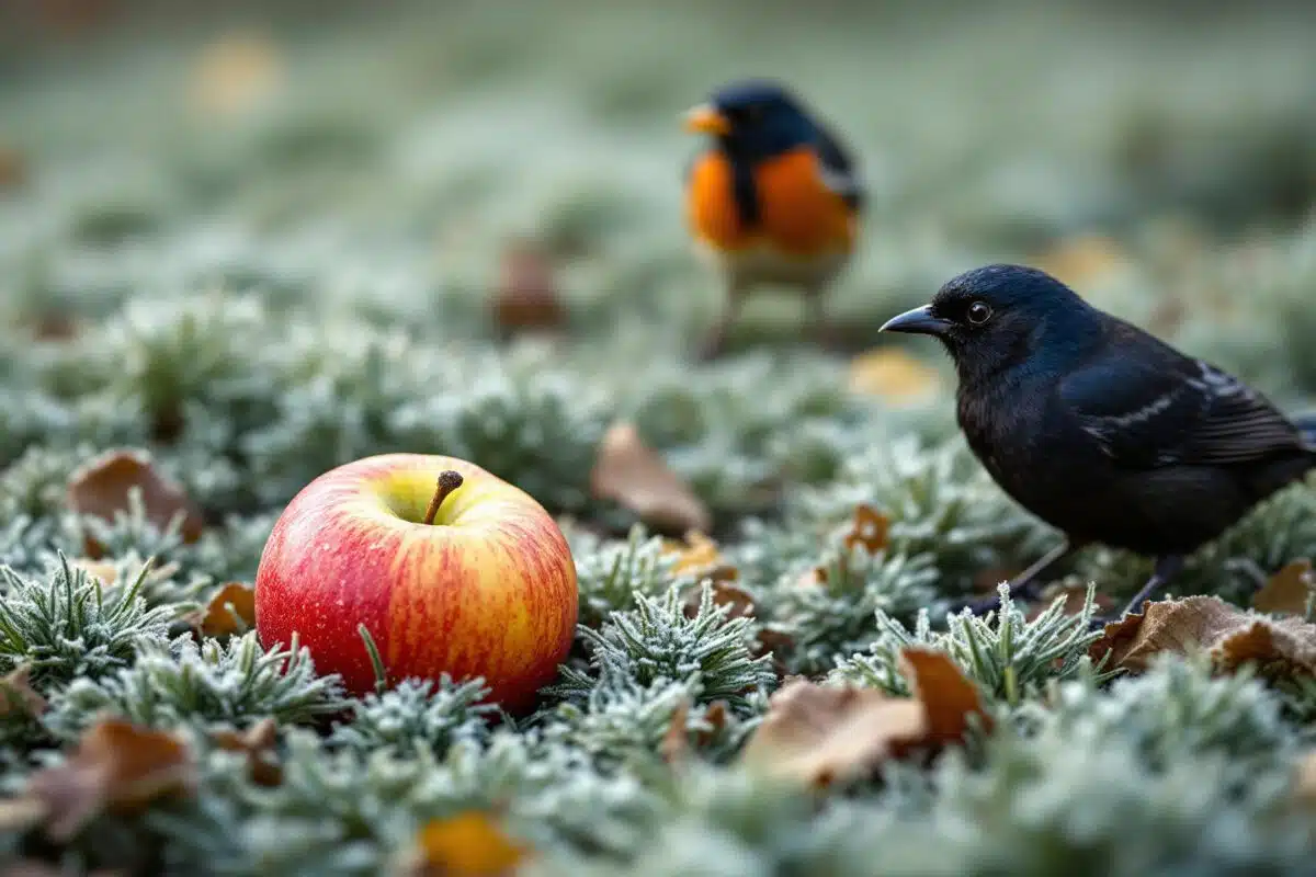 Une pomme oubliée, un festin inattendu : le ballet des oiseaux