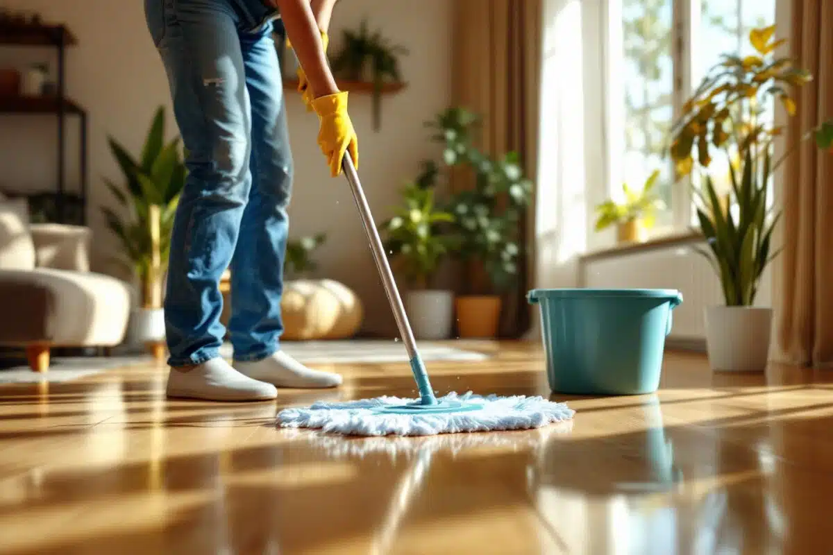Il suffit d’humidifier à peine la serpillière dans le mélange, d’essuyer le sol sans insister et de laisser sécher naturellement. Ce geste simple protège le bois et prolonge durablement la beauté du parquet, sans effort inutile et sans aucun film collant.